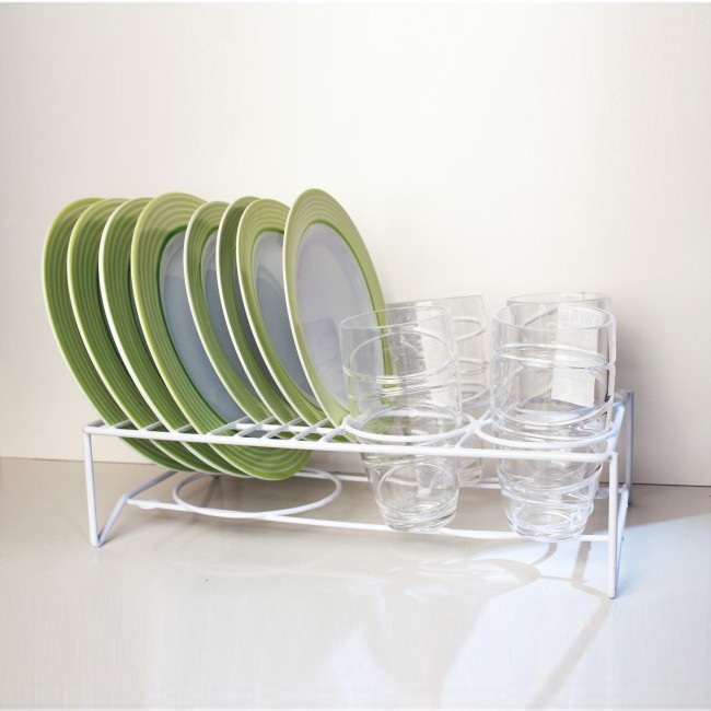- Constructed from white PVC coated wire it holds 4 dinner plates, 4 side plates & 4 cups